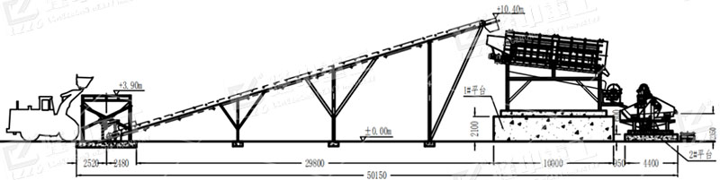 該生產(chǎn)線主要由給料機、滾筒篩 、濕式磁選機、脫水型細(xì)砂回收機等設(shè)備等組成。