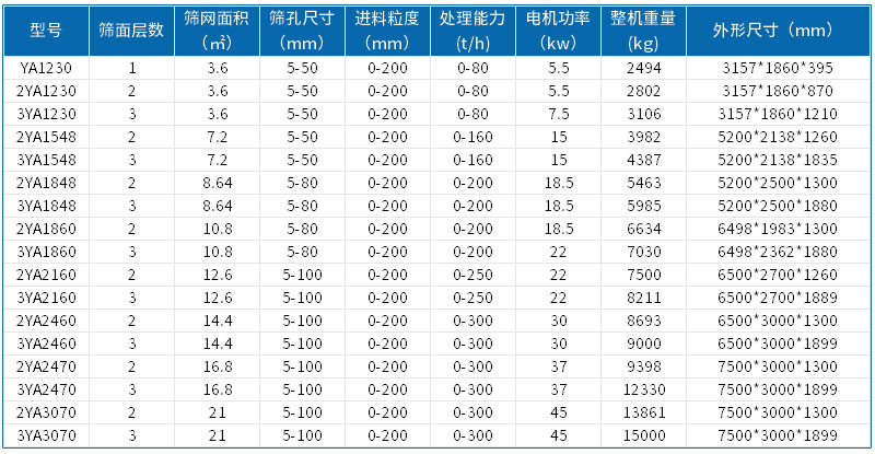 YA系列圓振動篩主要由偏心塊激振器、篩箱、電動機(jī)、及支承裝置等組成。采用小振幅,高頻率,大傾角結(jié)構(gòu),使該機(jī)篩分效率高、處理量大、壽命長、電耗低、噪音小。