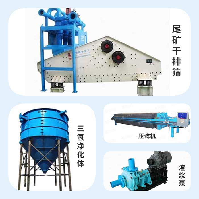 隆中重工目前推出了尾礦干排篩生產(chǎn)線工藝來解決尾礦庫的問題,其主要工作流程為,尾礦進(jìn)入耐磨渣漿泵濃度至25%后,再進(jìn)入旋流器濃縮,進(jìn)入旋流器之后,細(xì)顆粒進(jìn)入三氫凈化體(濃密機(jī)),經(jīng)過加工生產(chǎn)后三氫凈化體(濃密機(jī))溢流出來的清水可返回生產(chǎn)再利用。三氫凈化體(濃密機(jī))底流出來的濃度在30%~40%的物料經(jīng)過中心壓濾機(jī)的過濾之后物料經(jīng)由輸送帶,制成干尾礦。而旋流器出來的粗顆粒物,也就是濃度在60%~70%的粗顆粒進(jìn)入尾礦干排篩,然后經(jīng)過尾礦干排篩的濾餅進(jìn)行加工出來然后經(jīng)由輸送帶,制成干尾礦。尾礦干排篩工作過程中出來的部分濾液水可重新混入尾礦礦漿中,然后再循環(huán),再利用。