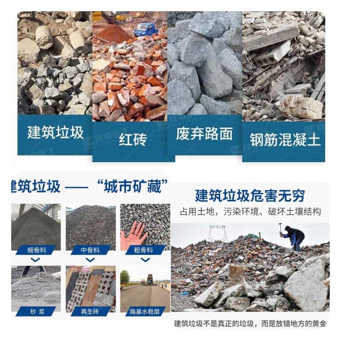 2、可以處理多種建筑垃圾,比如廢棄的鋼筋混凝土、樓板、紅磚瓦塊等,處理過(guò)程無(wú)大灰塵、沒(méi)有二次污染、環(huán)保節(jié)能。